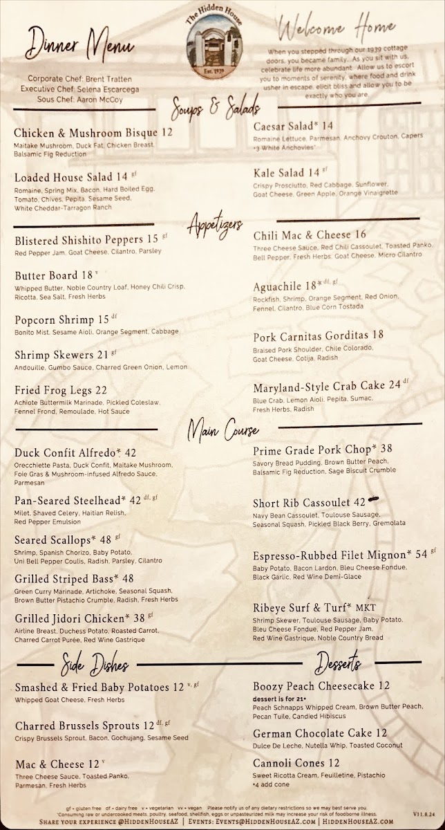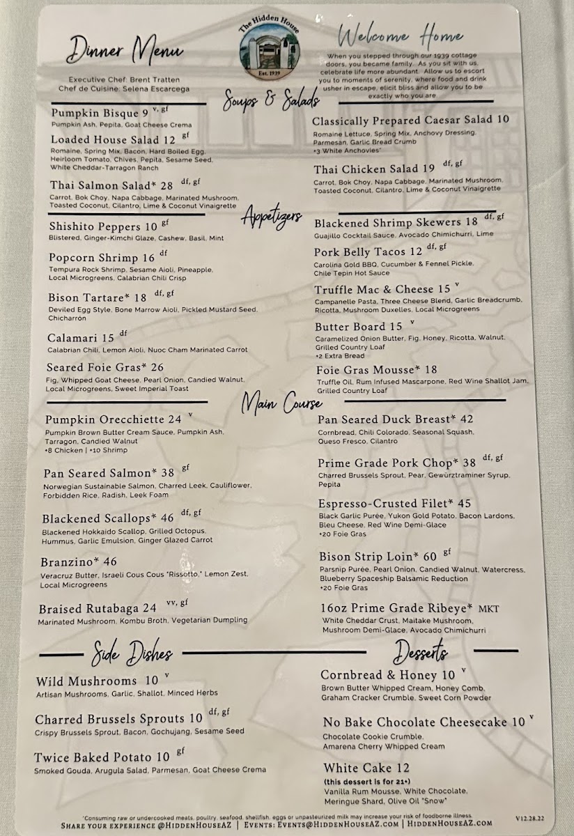 The Hidden House offers a thoughtfully curated menu that blends New American sophistication with approachable comfort. The selection reflects a balance between fine dining and a relaxed atmosphere, making it a fitting choice whether you're settling in for a thoughtful dinner or enjoying a casual evening with friends at the wine and cocktail bar.